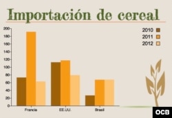 Según los datos de la firma de análisis comercial Trade, las importaciones cubanas de trigo cayeron de $426 millones de dólares en 2011 a $233 millones en 2012.